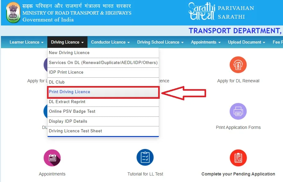 Now you will see an option of driving license above and click on it you will see an option of Print Driving License.