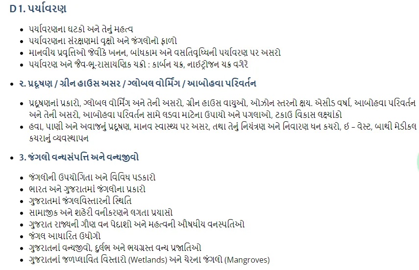 વનરક્ષક, વર્ગ-૩ સંવર્ગની જાહેરાત ક્રમાંક:FOREST/202223/1 ની લેખિત પરીક્ષાનો અભ્યાસક્રમ