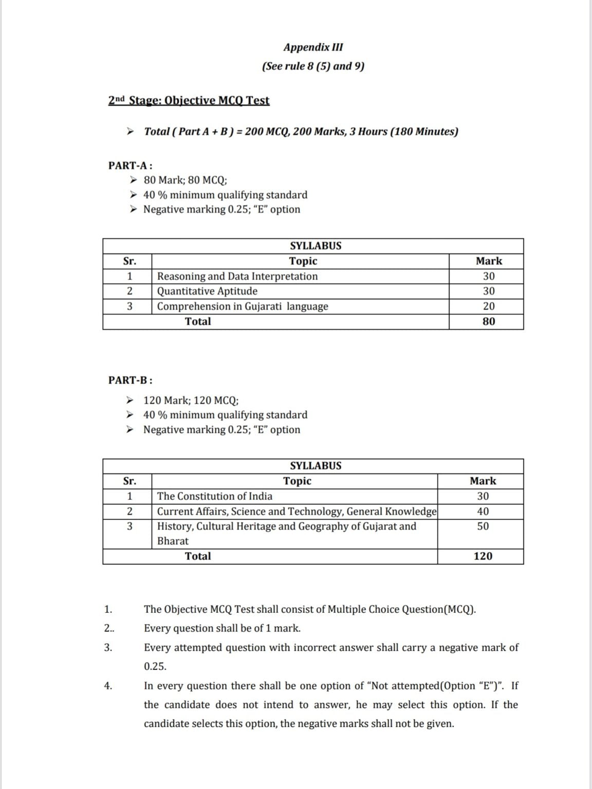 - OBJECTIVE MCQ TEST will be taken. This paper will be in two parts, Part-A and Part-B and a minimum of 40% marks will be required to pass in each part.