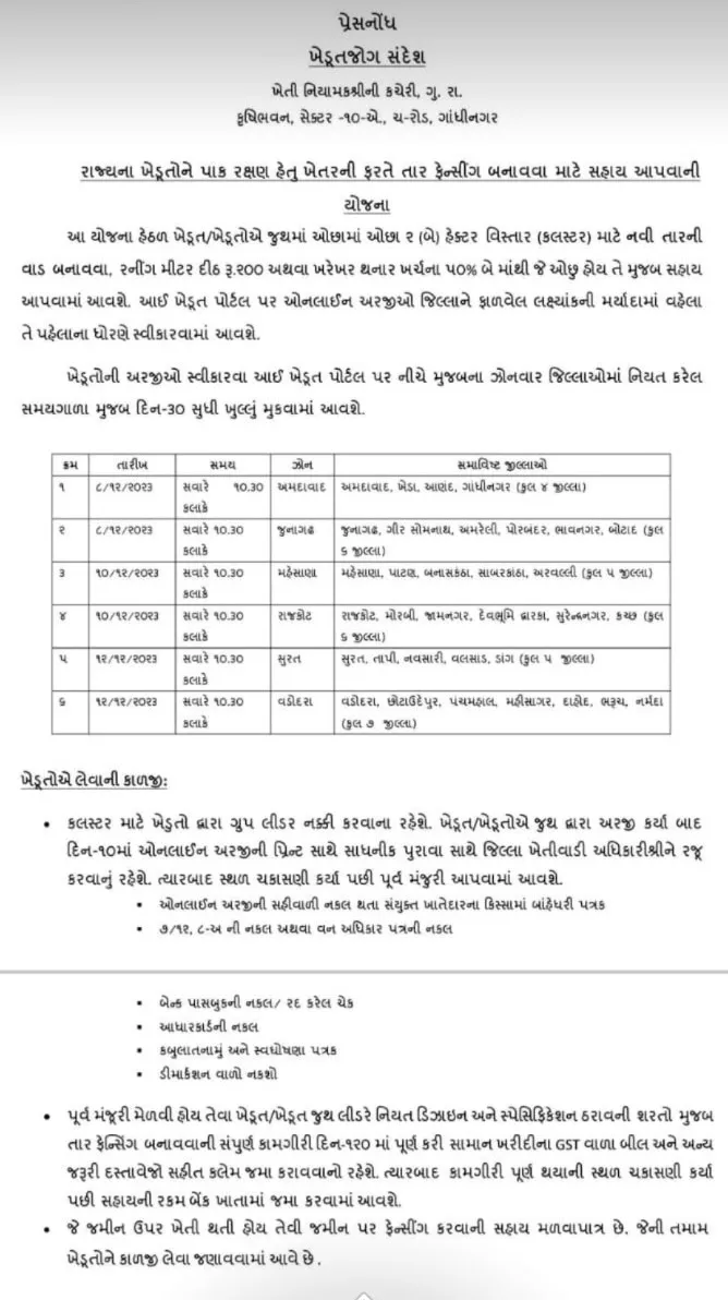 Khedut Fencing Yojana 2023 : The wire fencing scheme aims to protect farmers’ crops from wild boars and deer, thereby reducing damage to standing crops by these animals.