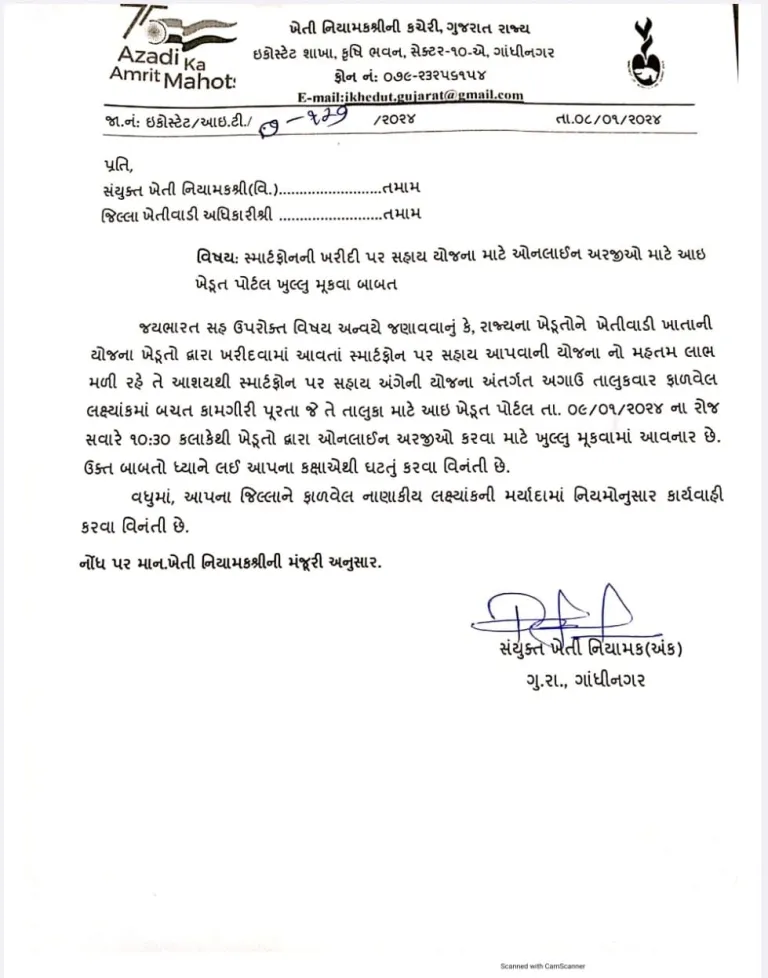 Khedut Smartphone Sahay Yojana 2024: Gujarat Government With the intention that the farmers of the state get the maximum benefit of the assistance scheme on the purchase of smartphones among the various schemes of the agriculture department, the state government will open the I Khedut Portal for the year 2024 on 09/01/2024 from 10:30 am onwards for farmers to make online applications Form,